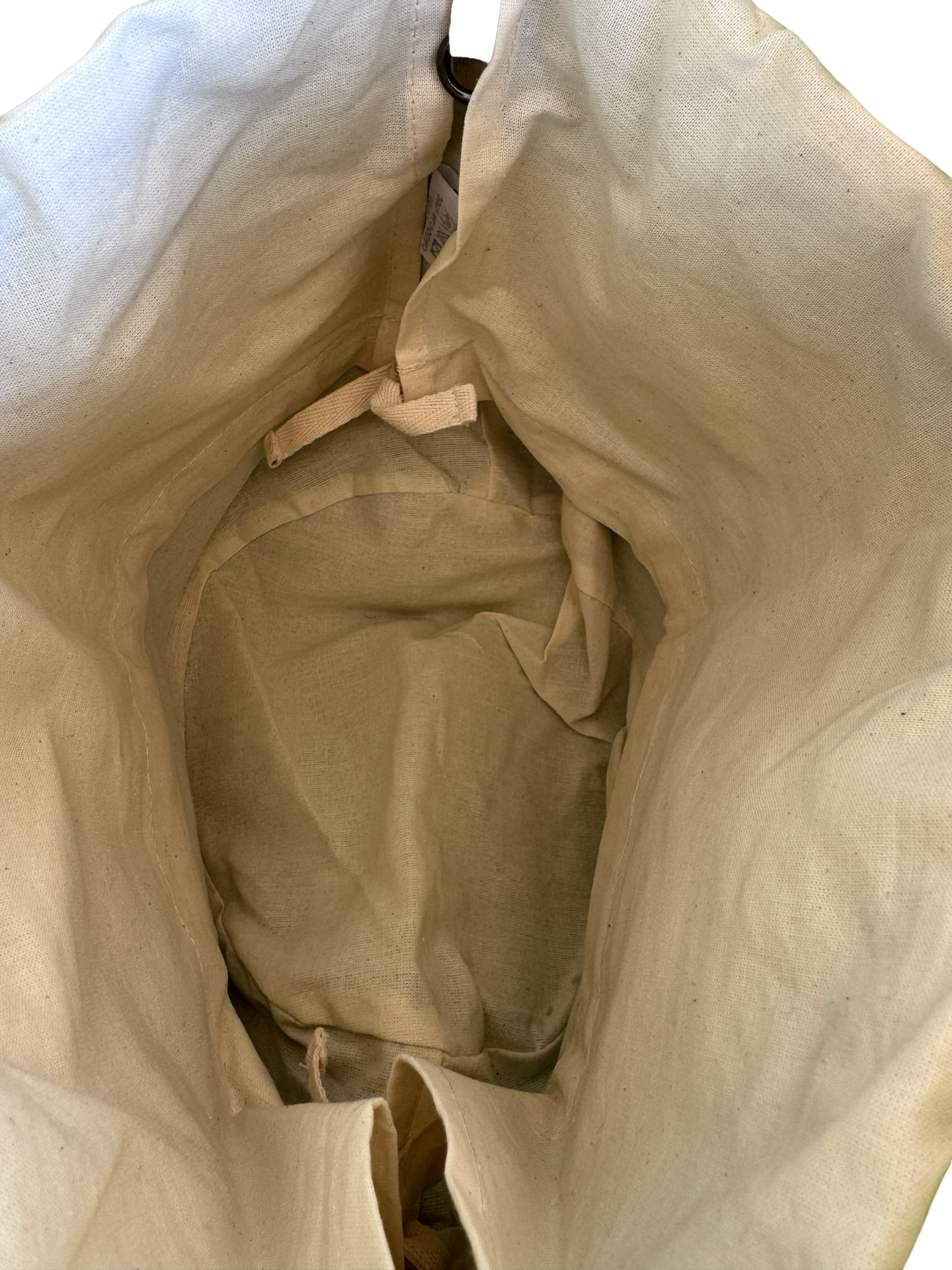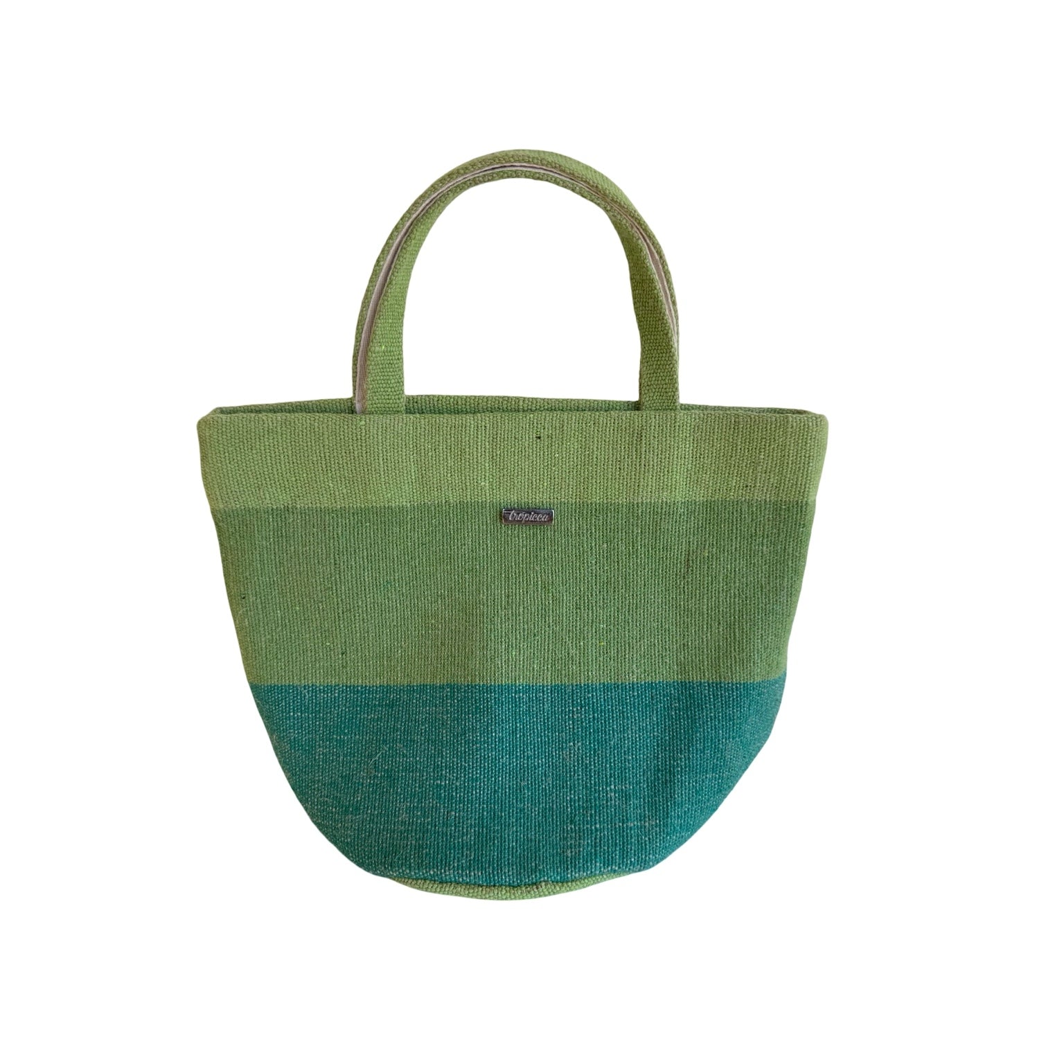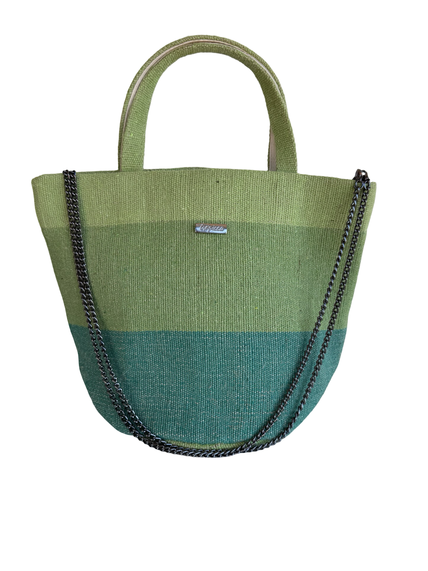 Bolsa feita em tear manual, com algodão reciclado e juta, fibra orgânica e natural, cultivada às margens do Rio Solimões na Floresta Amazônica, Brasil.