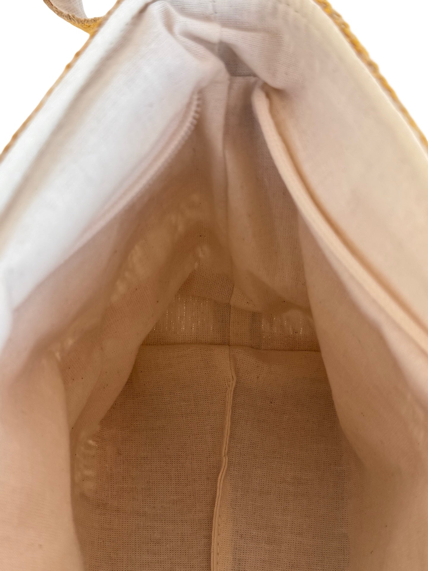 Necessaire feita em tear manual, com algodão reciclado e juta, fibra orgânica e natural, cultivada às margens do Rio Solimões na Floresta Amazônica, Brasil.