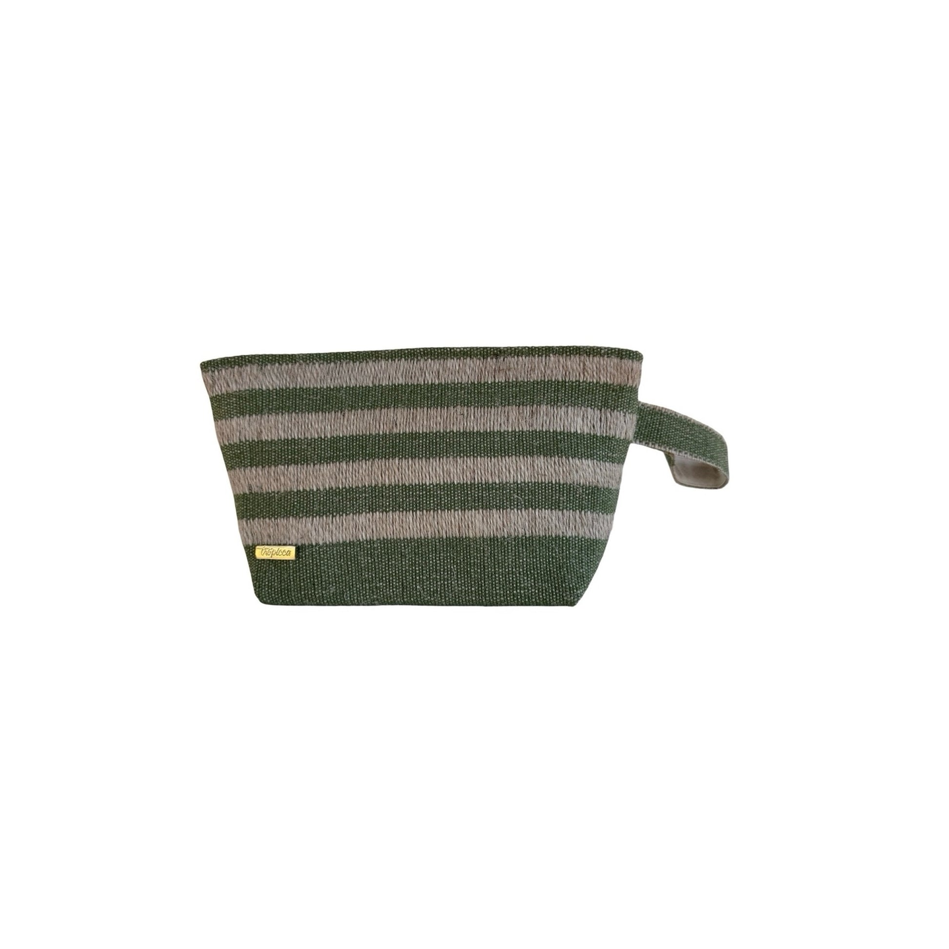 Necessaire feita em tear manual, com algodão reciclado e juta, fibra orgânica e natural, cultivada às margens do Rio Solimões na Floresta Amazônica, Brasil.