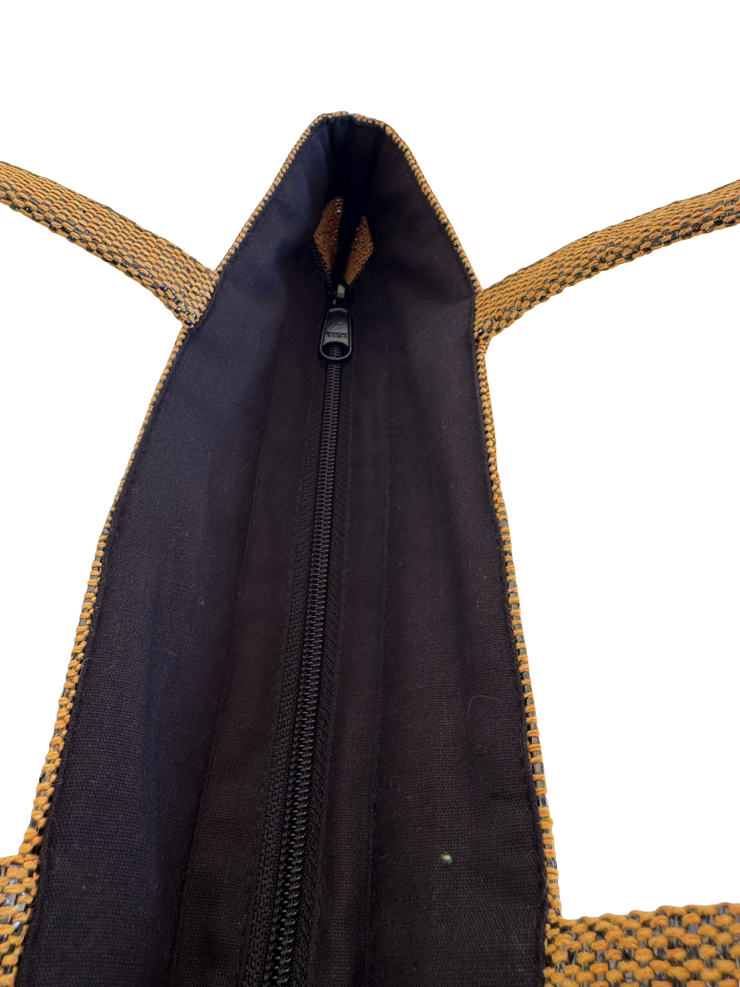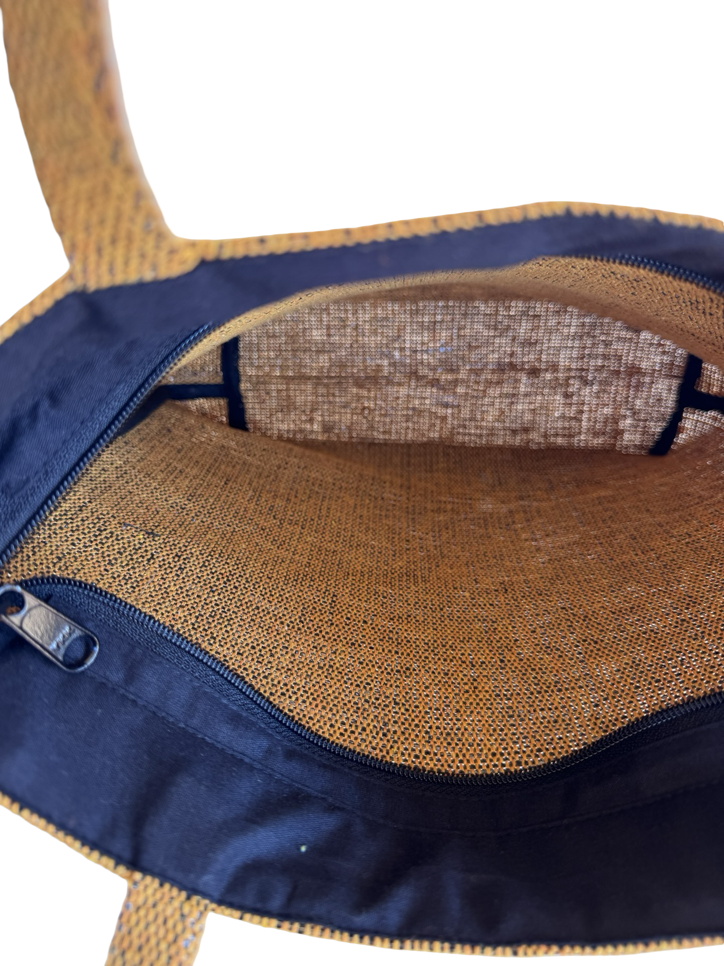 Essa expressão é perfeita para nossa bolsa confeccionada com fitas VHS reaproveitadas e fios naturais.